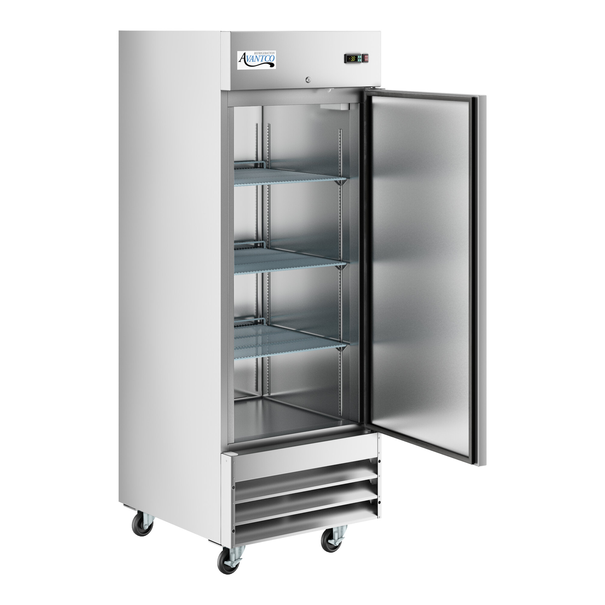 Your establishment relies on refrigeration for proper food safety, and with this Avantco A-23F-HC 29" solid door freezer, you receive performance you can depend on! A painted aluminum interior with a 304 stainless steel floor gives you increased durability, while a 430 stainless steel door and exterior sides give it a sleek appearance. For convenience, 3 epoxy coated shelves feature shelf clips for customization when desired.