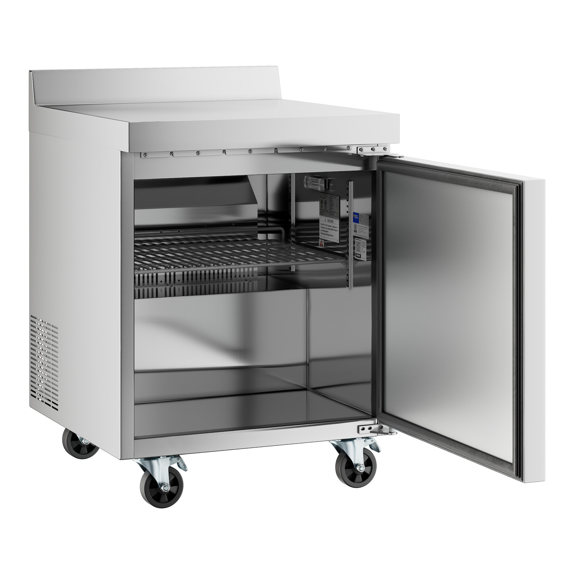 Make food preparation as convenient as possible with the Avantco 27" worktop refrigerator. With a spacious stainless steel worktop surface for slicing, dicing, assembling, mixing, and other food prep tasks, the unit features a 3 1/2" backsplash for wall protection and a refrigerated storage space below. It is readily accessible through the door, which opens up to a shelf to help you organize your ingredients and best utilize the spacious interior. Plus, because it accommodates up to 66.14 lb., the included PVC-coated wire shelf is well equipped for holding heavy bulk ingredients, from fresh produce to sauces, glazes, and other specialty condiments and garnishes.