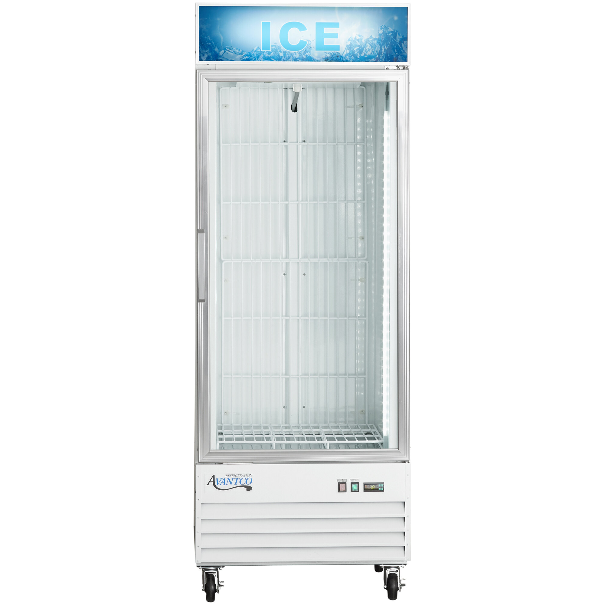 Store and showcase your bagged ice offerings with this Avantco GD-ICE-24F 31" white ice merchandiser! Designed with sharp looks and usability in mind, this unit is the perfect display for your bags of ice with its sleek finish. And, since the housing is made from white coated steel and the interior floor is made from stainless steel, you can be sure that it will provide superior durability. This unit boasts a triple-pane, argon-filled, anti-fogging glass door to ensure that customers always have a clear view of your products. Plus, the raised epoxy-coated steel shelf and back panel prevent product from blocking necessary air flow, while supporting up to 396 lb. of weight. Interior LED lighting works to illuminate and further merchandise your products. It even minimizes energy consumption by producing less heat than other types of lighting.