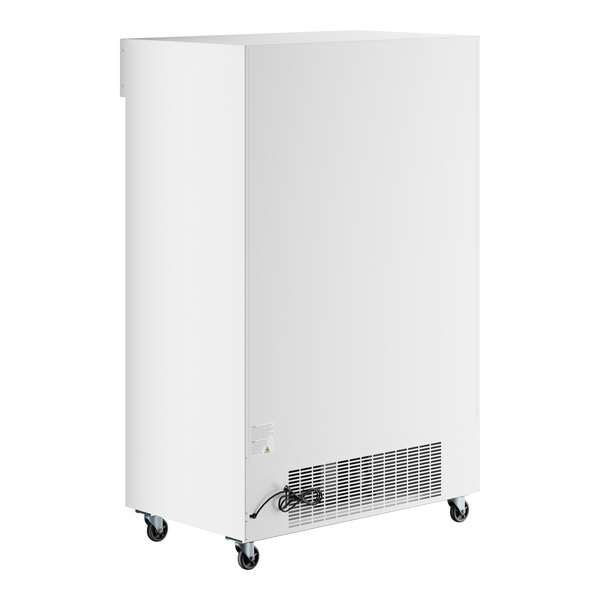 Designed to maintain temperatures from 33-40 degrees Fahrenheit, this refrigerator boasts a bottom-mounted 1/2 hp compressor that runs on R-290 refrigerant. This specialized refrigerant has an ozone depletion potential (ODP) of 0 and a global warming potential (GWP) of 3. In addition, the bottom-mounted design makes it easy for employees to load and unload products due to the raised bottom shelf. For optimal temperature retention, the entire cabinet is foamed-in place using polyurethane insulation. Other helpful features include a self-closing mechanism on the door, automatic defrosting, and a digital temperature control. This item requires a 115V electrical connection for operation.