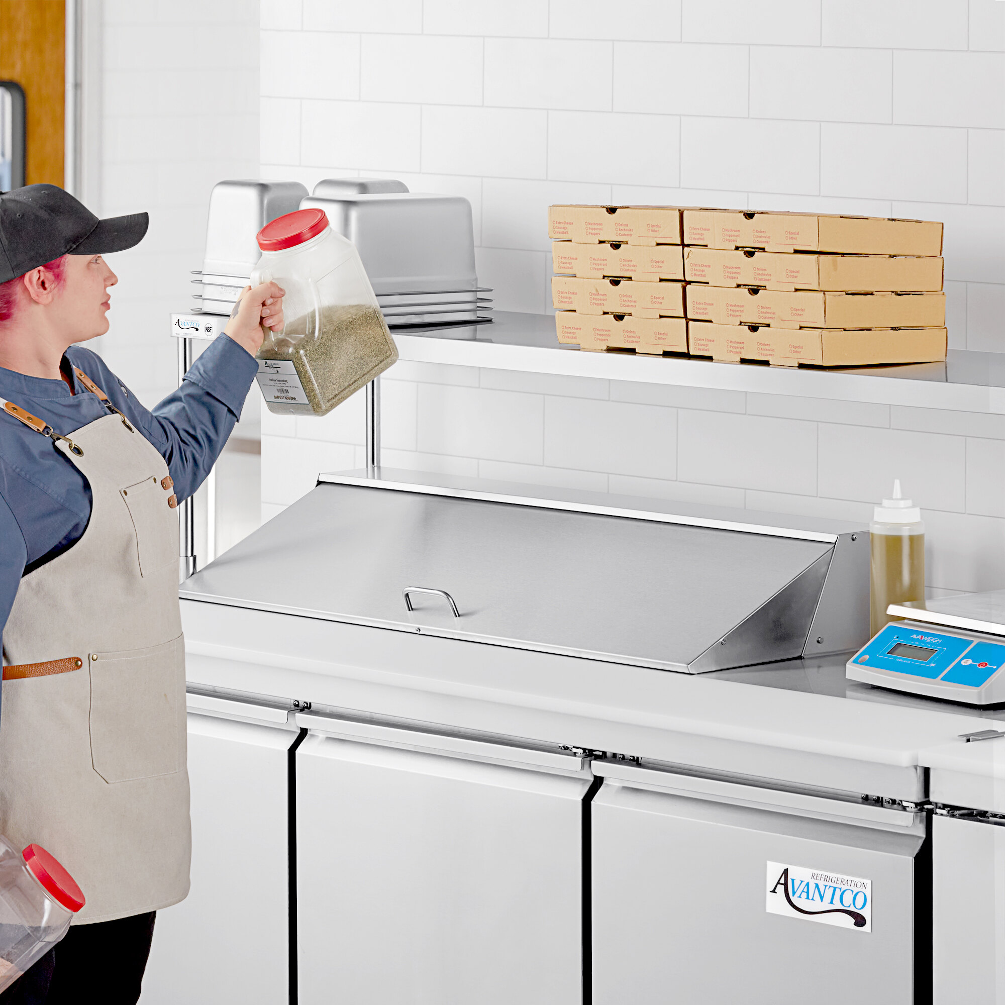 Take advantage of the unused space above select Avantco prep refrigerators by adding this single deck overshelf! This shelf provides one tier of shelving, allowing you to store and organize your gloves, labels, timers, and spices. Its 18 gauge, type 430 stainless steel construction ensures long-lasting durability. This overshelf mounts easily onto the end of your unit using the "L" bracket, while attaching the posts is as simple as tightening the included set screws.