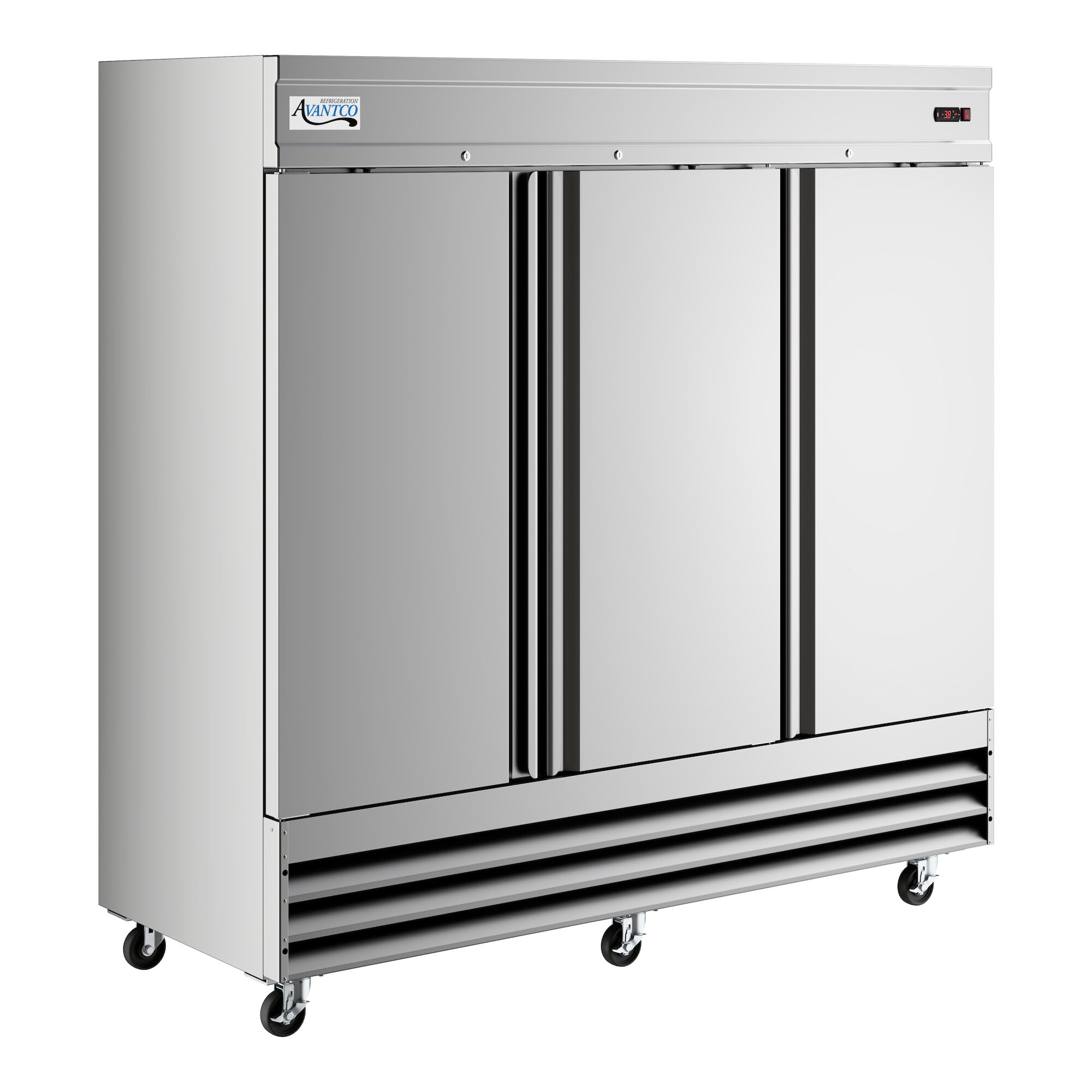 Providing impressive performance and dependable durability, this Avantco SS-3F-HC 81 5/16" stainless steel solid door reach-in freezer is engineered to hold your frozen food investments in a food safe environment. Designed with a 430 stainless steel door and exterior sides, the unit features a sleek appearance that's matched with its ability to withstand busy, heavy-use kitchens. Plus, the interior is 304 stainless steel, giving the unit superior corrosion resistance and cleanability; it won't become damaged by inevitable spills and messes. As a result, it's easier for your employees to maintain during the hustle and bustle of their daily tasks. For ultimate storage flexibility, this freezer even comes with 9 epoxy coated shelves with a versatile shelf slide design that can accept full size food pans! Designed for your utmost convenience, the unit is sure to accommodate your ever-evolving needs as your business grows, expands, and transforms over time. This unit also boasts interior LED lighting that automatically turns on and off when you open and close the door. This helps improve visibility and streamline your work flow.
