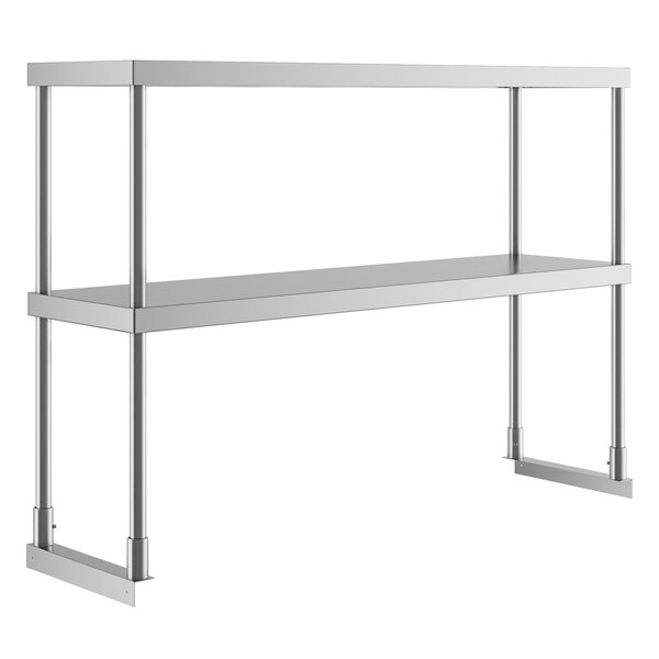 Take advantage of the unused space above select Avantco prep refrigerators by adding this double deck overshelf! It is equipped with 2 shelves to truly maximize the available space in your busy kitchen or prep area, giving you greater capacity than a single shelf and allowing you to store and organize your gloves, labels, timers, and spices. Its 18 gauge, type 430 stainless steel construction ensures long-lasting durability. This overshelf mounts easily onto the end of your unit using the "L" brackets, while attaching the posts is as simple as tightening the included set screws.