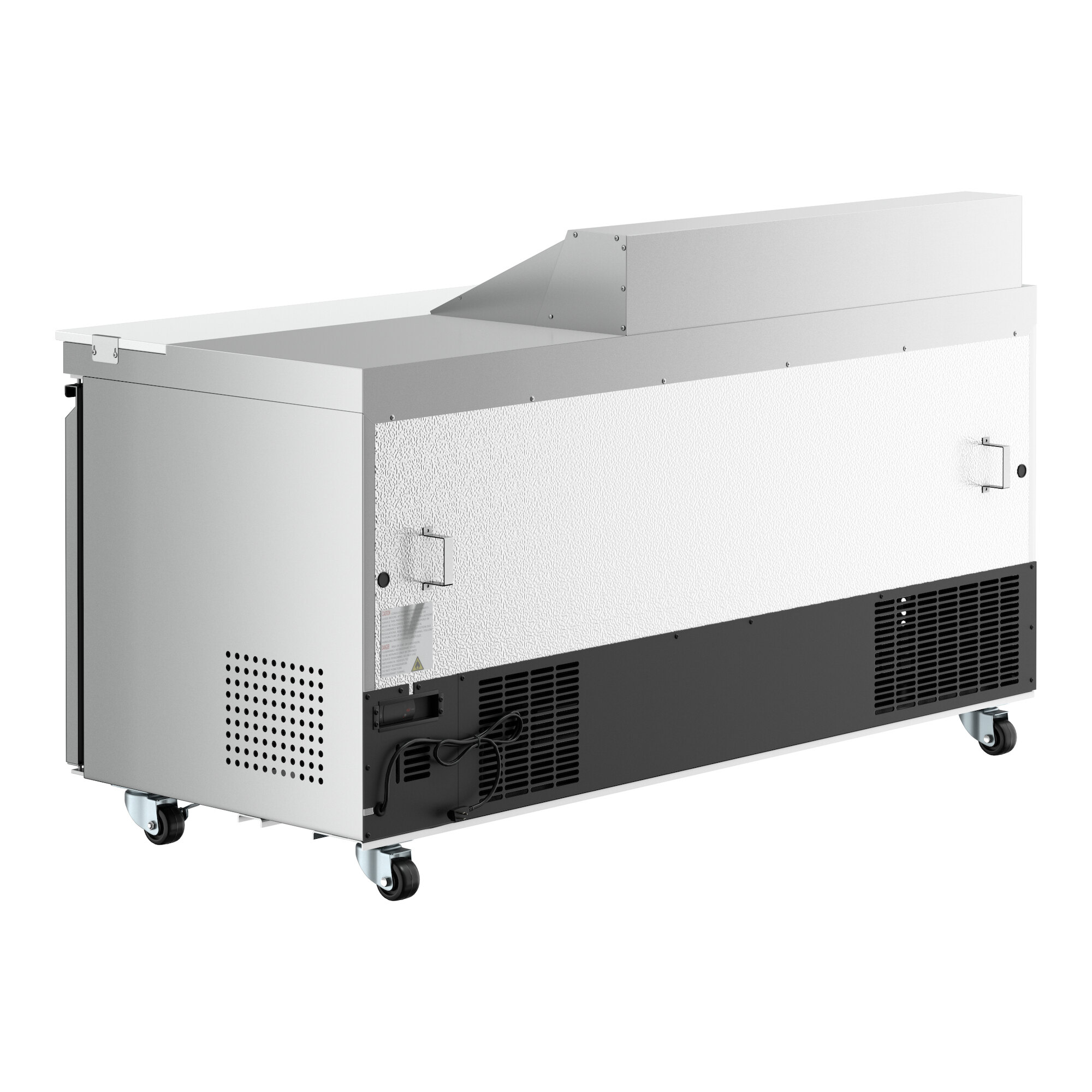 Beneath the workspace is additional storage space. Because it's refrigerated, the space is great for storing back-up ingredients, such as deli meat and cheese, as well as less common toppings. three epoxy-coated steel shelves are included and can each accommodate up to 88 lb. of weight, helping to organize your assorted supplies. The three solid swing doors allow users to quickly grab supplies without interrupting workflow.