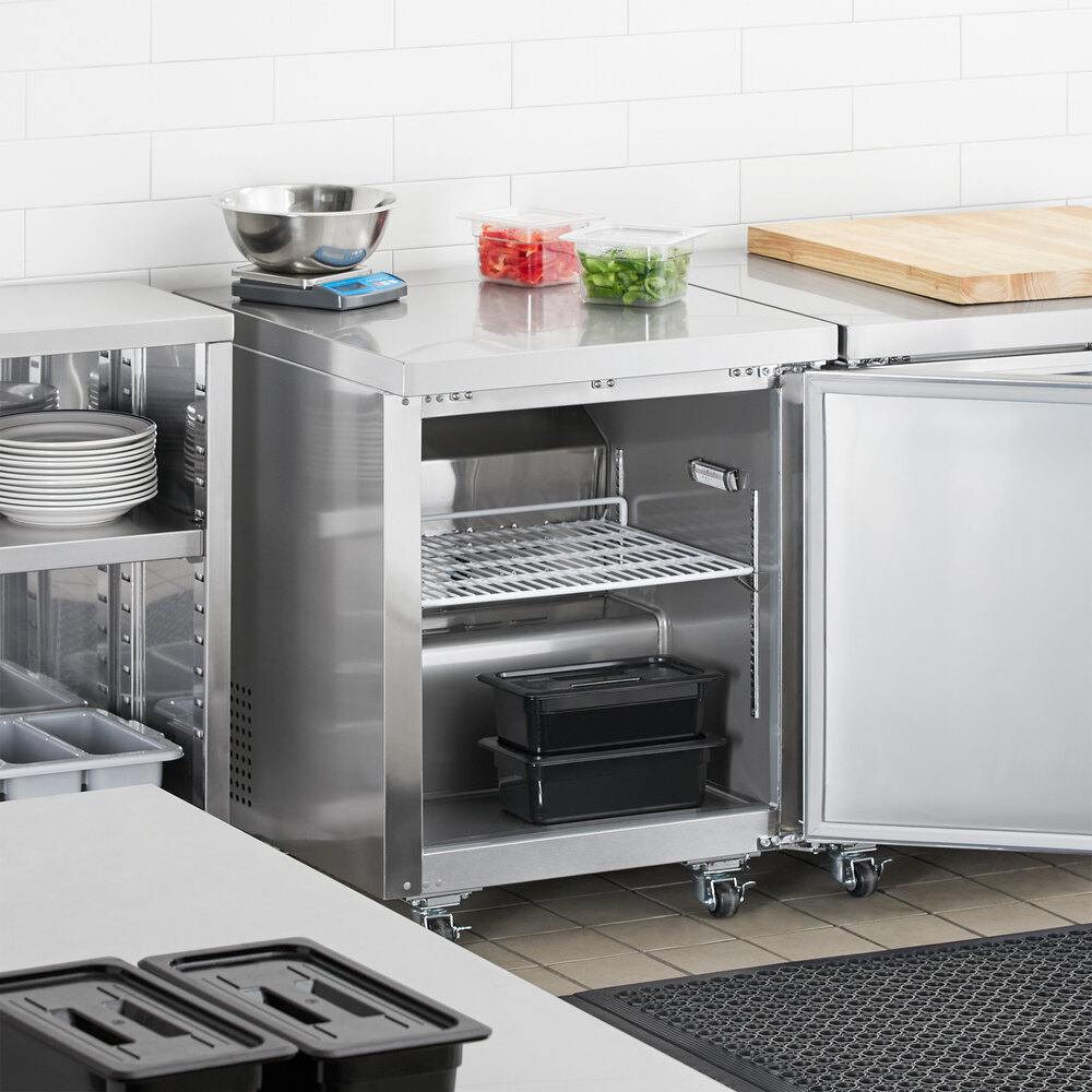 Make cold food storage as convenient as possible with the Avantco 27" undercounter refrigerator. With a spacious refrigerated portion readily accessible through its door, the unit opens up to a shelf to help you organize your ingredients and best utilize the 5.5 cu. ft. interior. Plus, because it accommodates up to 88 lb., the epoxy-coated steel shelf is well equipped for holding heavy bulk ingredients, from dozens of eggs to jars of condiments and sauces.