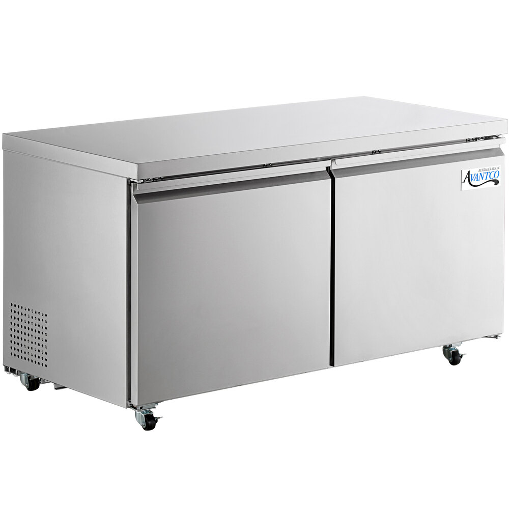 Make frozen food storage as convenient as possible with the Avantco 60" undercounter freezer. With a spacious freezer portion readily accessible through its two doors, the unit opens up to two shelves to help you organize your ingredients and best utilize the 14.2 cu. ft. interior. Plus, because they each accommodate up to 90 lb., the epoxy-coated steel shelves are well equipped for holding heavy bulk ingredients, from frozen broccoli and cauliflower to frozen pork chops.