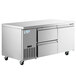 Make cold food storage as convenient as possible with the Avantco SS-UD-2RD 67" extra deep undercounter refrigerator. With a spacious refrigerated portion readily accessible through 2 drawers on the left and a door on the right, the 16.4 cu. ft. unit helps you organize your ingredients. While the door section features an epoxy-coated shelf, the drawers include a total of 6 assorted divider bars. These fit in the drawers where they act as braces for full size or fractional pans. Easily reconfigure or remove the braces to best suit your inventory. Drawers provide excellent organization for your food pans and can help maximize your kitchen's workflow. Drawers also allow you to quickly pull ingredients for faster operation and ease of use.