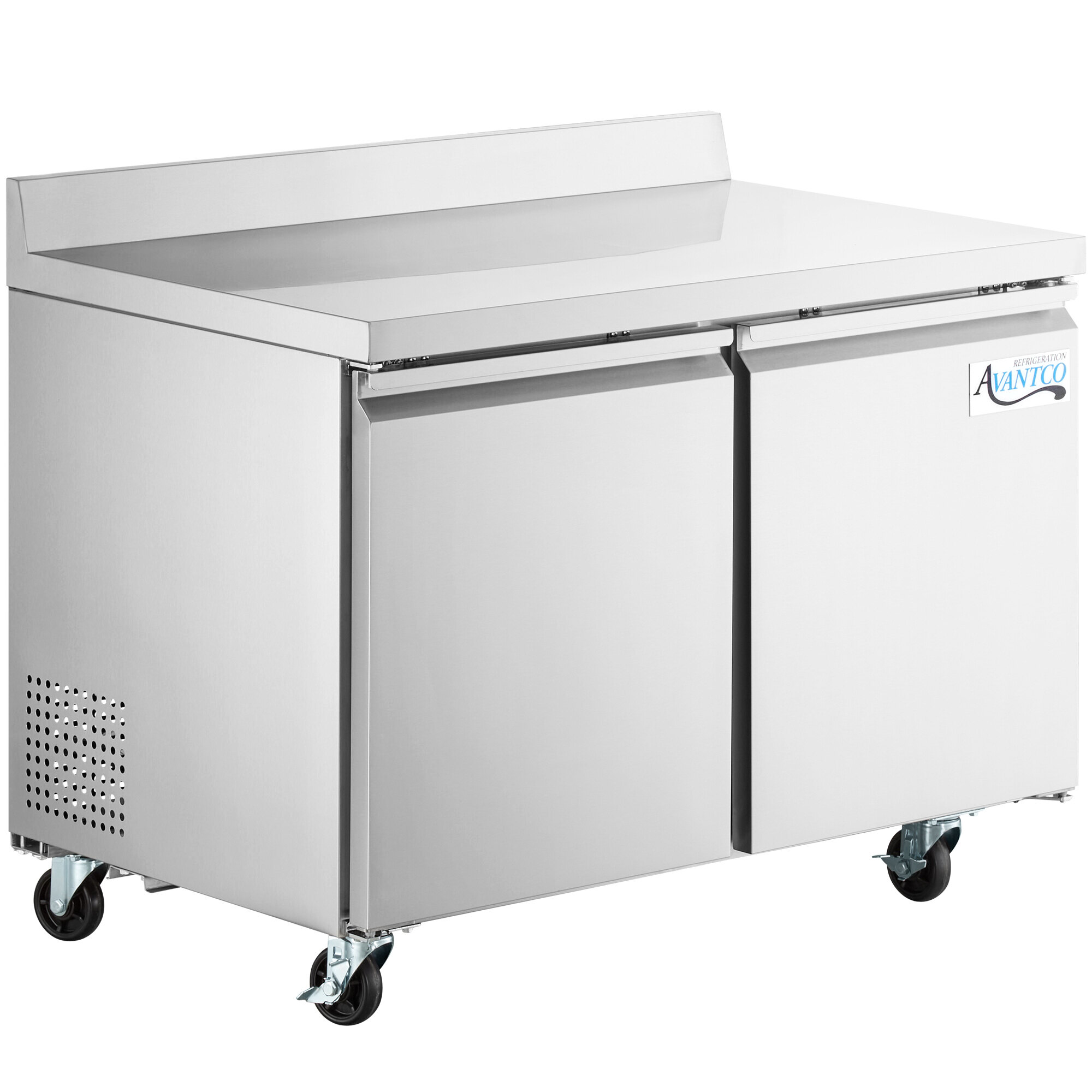 Make food preparation as convenient as possible with the Avantco SS-WT-48F-HC 48" worktop freezer. With a spacious stainless steel worktop surface for slicing, dicing, assembling, mixing, and other food prep tasks, the unit features a 3 1/2" backsplash for wall protection and freezer storage space below. The freezer portion is readily accessible through the two doors, which each open up to a shelf that helps you organize your ingredients and best utilize the roomy interior. Plus, because they each accommodate up to 88 lb., the two epoxy coated steel shelves are well equipped for holding heavy bulk ingredients.