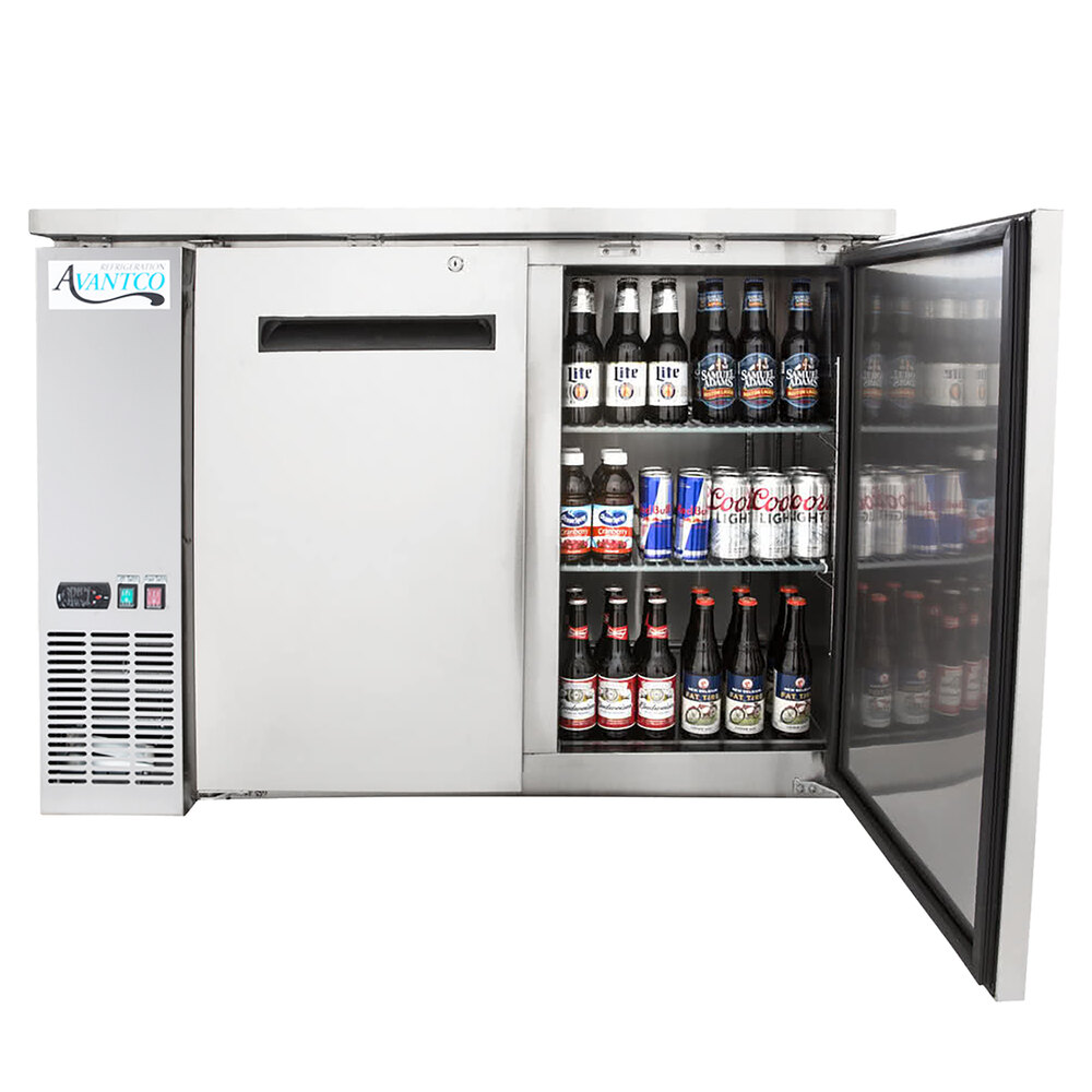 Optimize the space behind your bar by adding refrigerated storage with this Avantco UBB-48S-HC 48" stainless steel counter height narrow sliding glass door back bar refrigerator with LED lighting! Conveniently store a variety of bottles behind the bar so that they're ready to serve at all times, and gain 13 cu. ft. of refrigerated storage space for your most popular brews, ales, ciders, and other beverages. Its narrow design makes it more compact than similar units, making it ideal for operations that are tight on space.