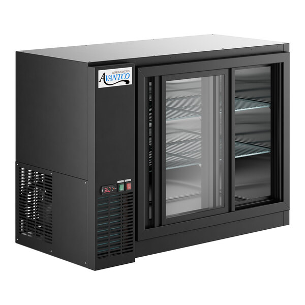 Optimize the space behind your bar by adding refrigerated storage with this Avantco UBB-48S-GT 48" black underbar height narrow sliding glass door back bar refrigerator with LED lighting! Conveniently store a variety of bottles behind the bar so that they're ready to serve at all times, and gain 13 cu. ft. of refrigerated storage space for your most popular brews, ales, ciders, and other beverages. Its narrow design makes it more compact than similar units, making it ideal for operations that are tight on space.
