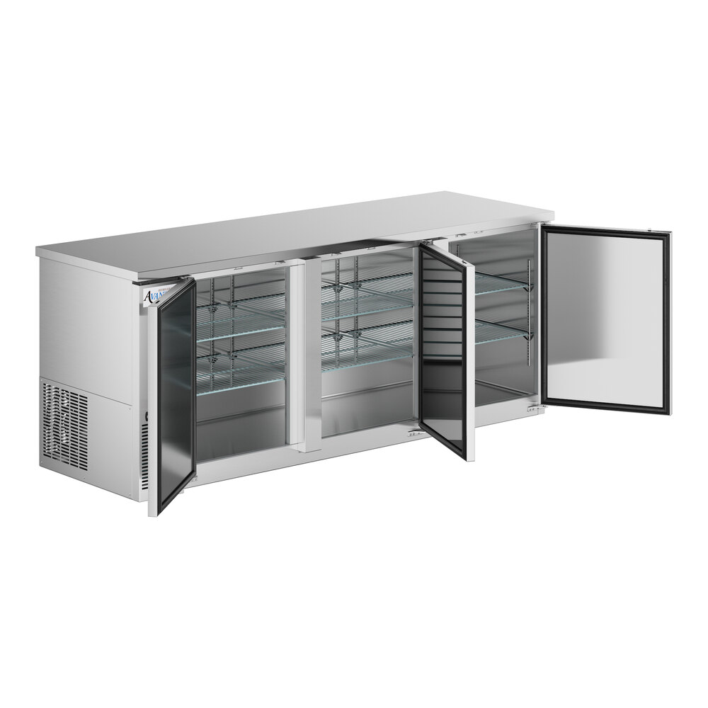 Optimize the space behind your bar by adding refrigerated storage with this Avantco UBB-60-GT-G-S 90" counter height back bar refrigerator! Providing 32.4 cu. ft. of interior storage space, the unit fits up to (4) 1/2 kegs and houses six epoxy-coated shelves that each accommodate up to 88 lb. The epoxy-coated steel shelves are perfect for storing and organizing drinks for your bar service, from bottles of ale to bottles of cider.