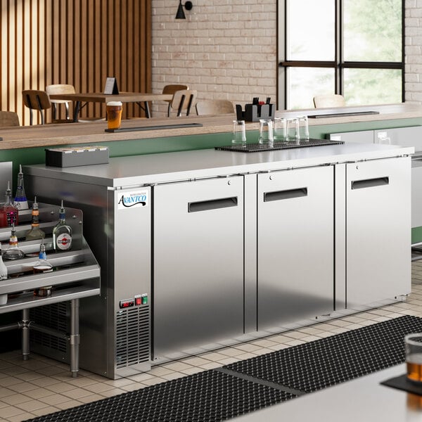 Optimize the space behind your bar by adding refrigerated storage with this Avantco UBB-60-GT-G-S 90" counter height back bar refrigerator! Providing 32.4 cu. ft. of interior storage space, the unit fits up to (4) 1/2 kegs and houses six epoxy-coated shelves that each accommodate up to 88 lb. The epoxy-coated steel shelves are perfect for storing and organizing drinks for your bar service, from bottles of ale to bottles of cider.