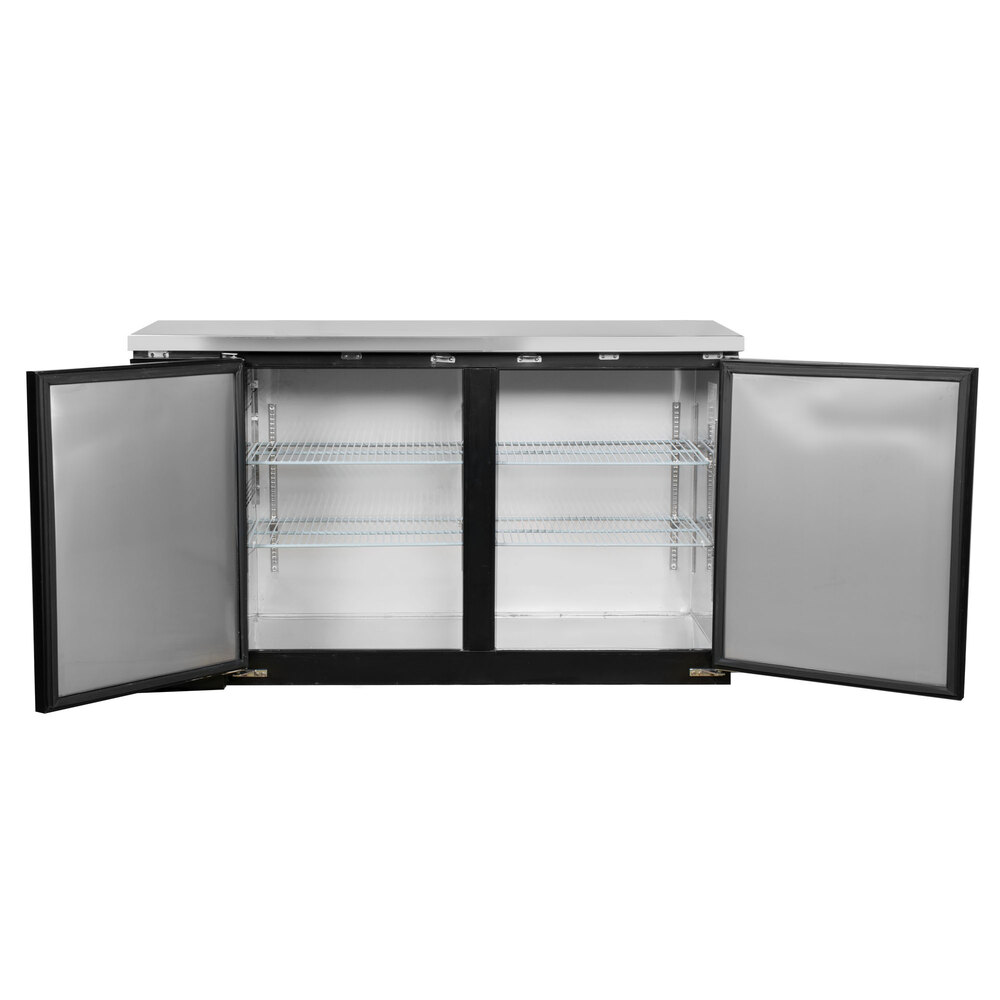 60" Black Counter Height Narrow Solid Door Back Bar Refrigerator with LED Lighting