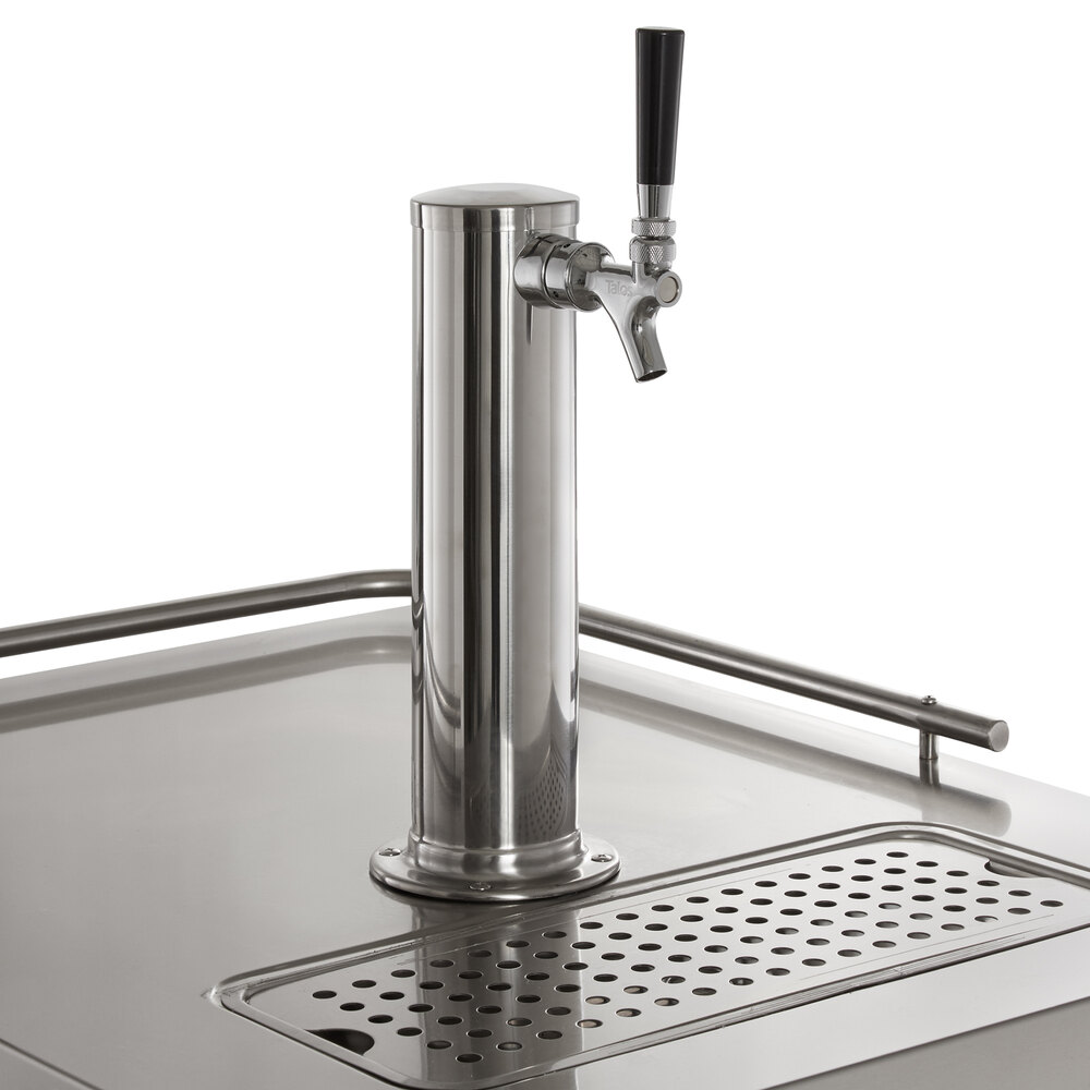 Unlike many competitive beer dispensers, this model ships with a coupler so that you can tap kegs right out of the box! This commercial kegerator features a black coated steel exterior and a 1 1/2" thick stainless steel top that is both durable and extremely simple to clean, while a built-in drip tray further expedites end-of-day cleaning. It has a 1/4 hp refrigeration system that circulates R290 hydrocarbon refrigerant. R290 refrigerant has an ozone depletion potential (ODP) of 0 and a global warming potential (GWP) of 3, making it an energy-efficient choice for your business. A 115V electrical connection is required for operation.