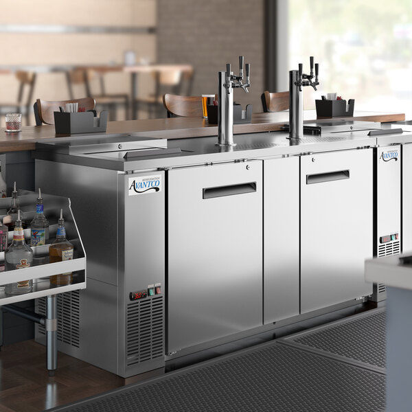 Whether you operate a pub, banquet hall, catering service, or facilitate other special events, this Avantco UDD-3-CT-S-6 stainless steel kegerator / beer dispenser with (2) triple tap tower and club top is an excellent way to offer crisp, refreshing draft beer to your guests without investing in a complex built-in tap system! This unit features (2) stainless steel triple tap towers with a 12" faucet height that allows you to easily fill pint glasses and pitchers with local microbrews, international macrobrews, and everything in between. The chrome-plated brass faucet design ensures a polished look and maximum durability. It also features a club top, which provides an extra storage compartment for chilling approximately 15-18 additional beer bottles or other single-serve bottles.