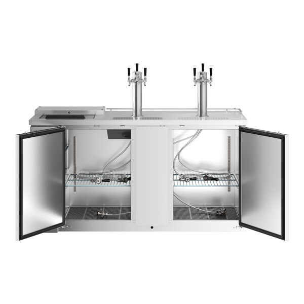 This dispenser holds (3) 1/2 kegs so you can stock up on one brew or offer customers a selection to choose from. It even comes with 2 shelves for optional bottle or can storage while concealing the product behind 2 solid doors. The doors themselves are not only self-closing to prevent potential energy loss, but also lock to prevent theft during off hours. This unit is equipped with knockout plugs to install external CO2 lines.