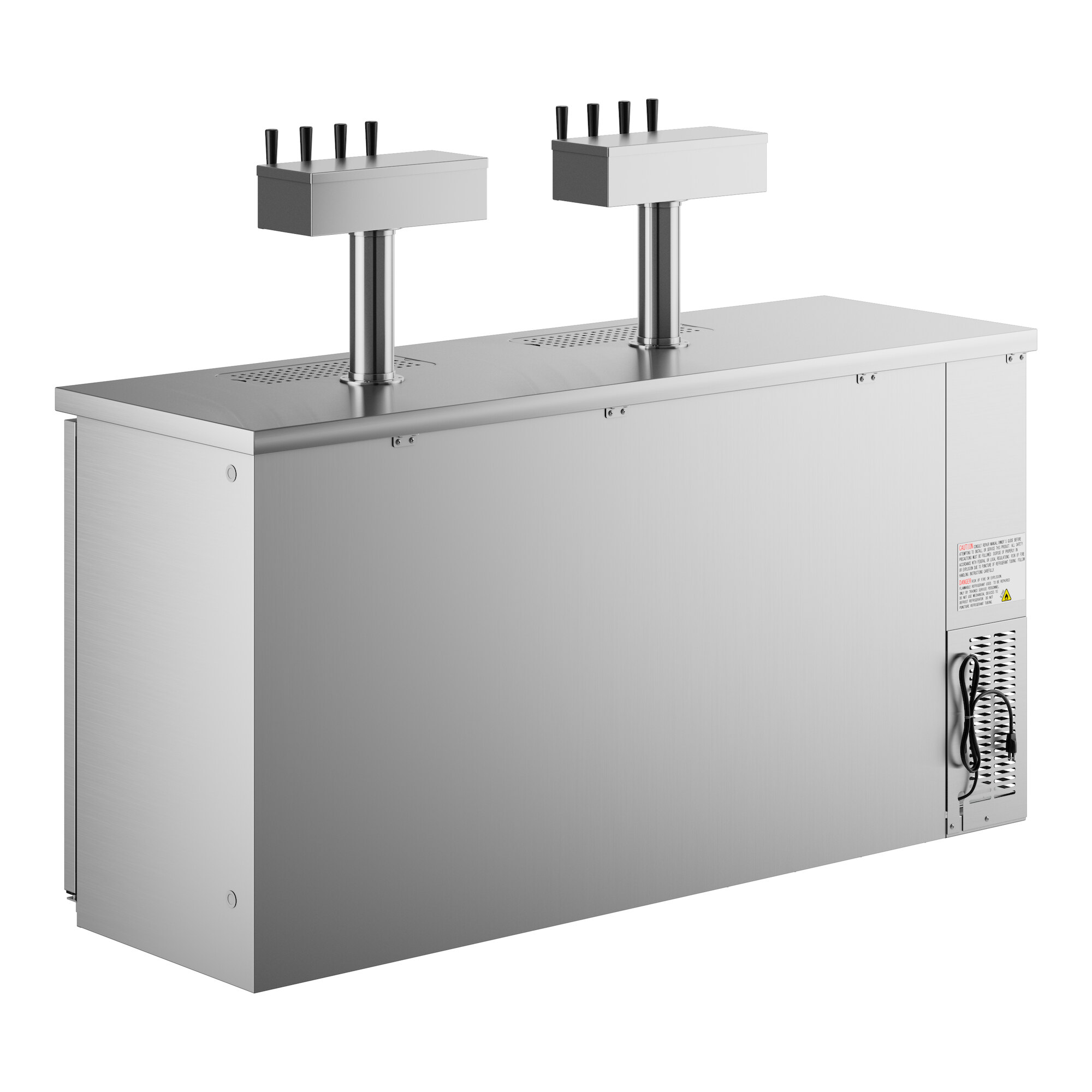 Unlike many competitive beer dispensers, this model ships with 8 couplers so that you can tap kegs right out of the box. It features a sleek stainless steel exterior and a 304 type stainless steel interior that is both durable and easy to clean, while a built-in drip tray further expedites end-of-day cleaning. It has a 3/7 hp refrigeration system that circulates R290 hydrocarbon refrigerant. R290 refrigerant has an ozone depletion potential (ODP) of 0 and a global warming potential (GWP) of 3, making it an energy-efficient choice for your business. A 115V electrical connection is required for operation.