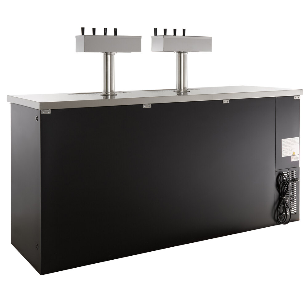 HC (2) Four Tap Shallow Depth Kegerator Beer Dispenser - Black, (3) 1/2 Keg Capacity
