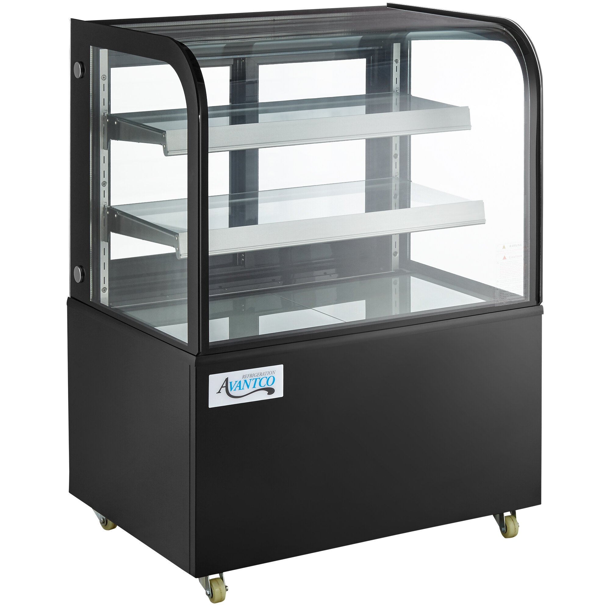 Showcase everything from cakes and pies to eclairs and flan in this Avantco BC-36-HC 36" curved glass black refrigerated bakery display case! Perfect for bakeries, cafes, coffee shops, and diners, the unit includes 2 glass shelves to help display and organize product. Each shelf holds up to 44 lb. of weight.