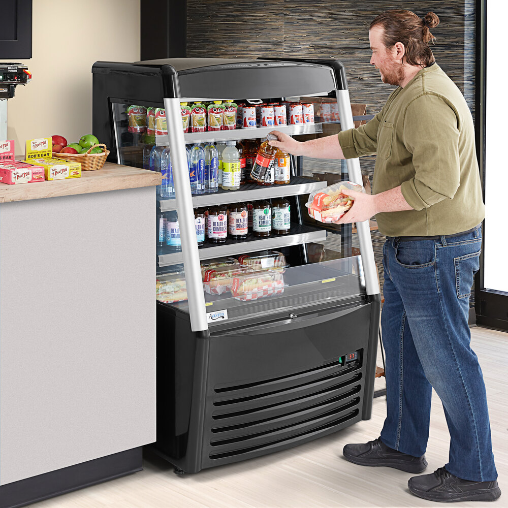 Display your grab-and-go items in style while keeping them chilled with this Avantco BMAC-36HC 36" black vertical air curtain merchandiser. Perfect for convenience stores, grocery marts, cafes, and other operations, this merchandiser refrigerator is designed to display! Whether you are selling cold, bottled drinks or pre-packaged grab-and-go snacks, this merchandiser gives you the opportunity to let your products sell themselves.