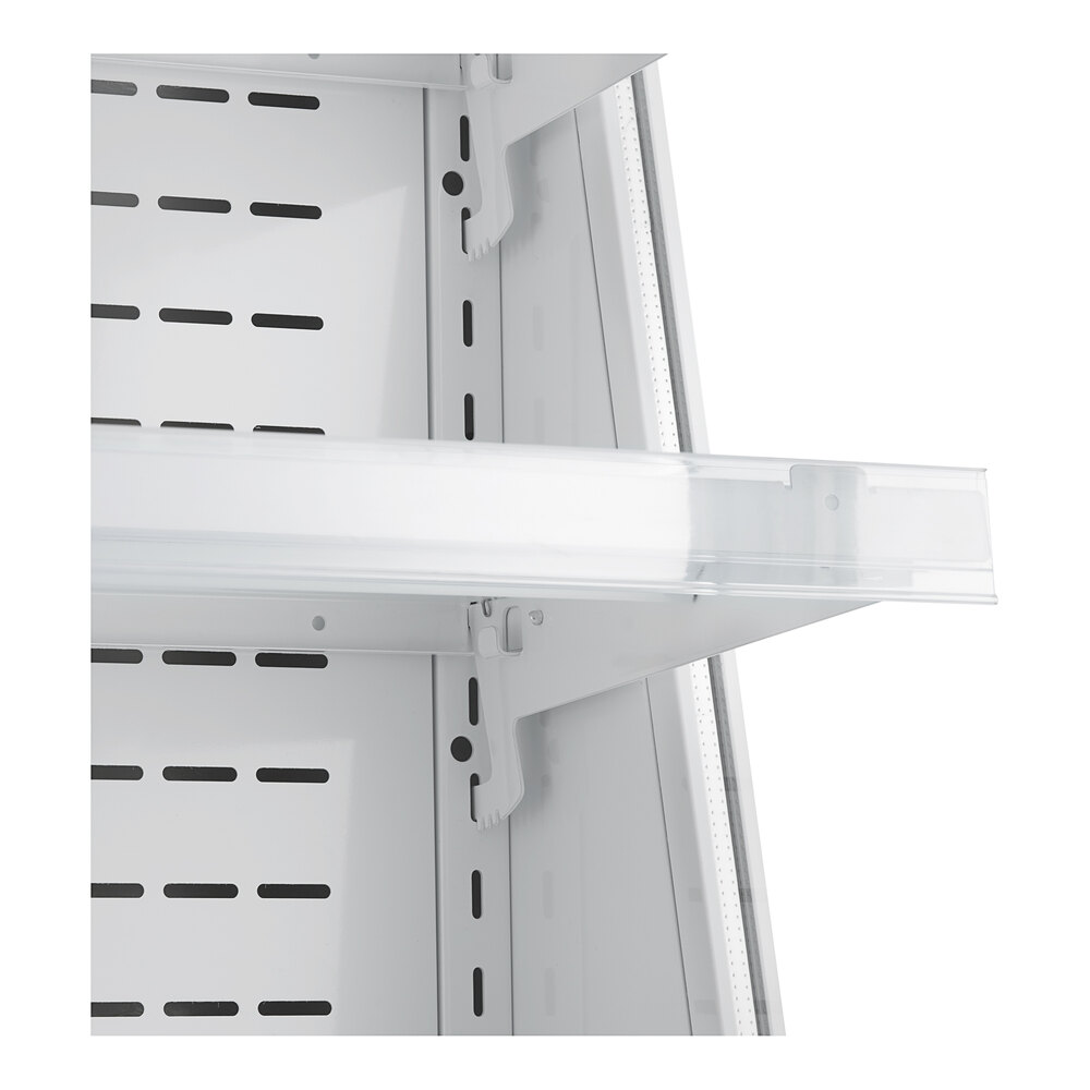 This unit operates using R-290, a specialized refrigerant that has an ozone depletion potential (ODP) of 0 and a global warming potential (GWP) of 3. This merchandiser contains a perforated back panel to ensure that air moves freely throughout the unit, keeping food and drinks cool. With increased ventilation, this unit uses less energy than comparable models. Also, the perforated back panel prevents the user from blocking airflow if the merchandiser becomes overfilled.