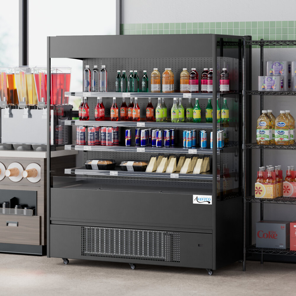 Display your grab-and-go items in style while keeping them chilled with this Avantco VOA-60-B 59 1/8" black extra deep vertical open air merchandiser. Perfect for convenience stores, grocery marts, and cafes, this vertical merchandiser is designed to display! Whether you are selling cold, bottled drinks or pre-packaged grab-and-go snacks, this merchandiser gives you the opportunity to let your products sell themselves. Additionally, with its extra deep design, you have more space than ever before to make sure your customers have the best variety of options!
