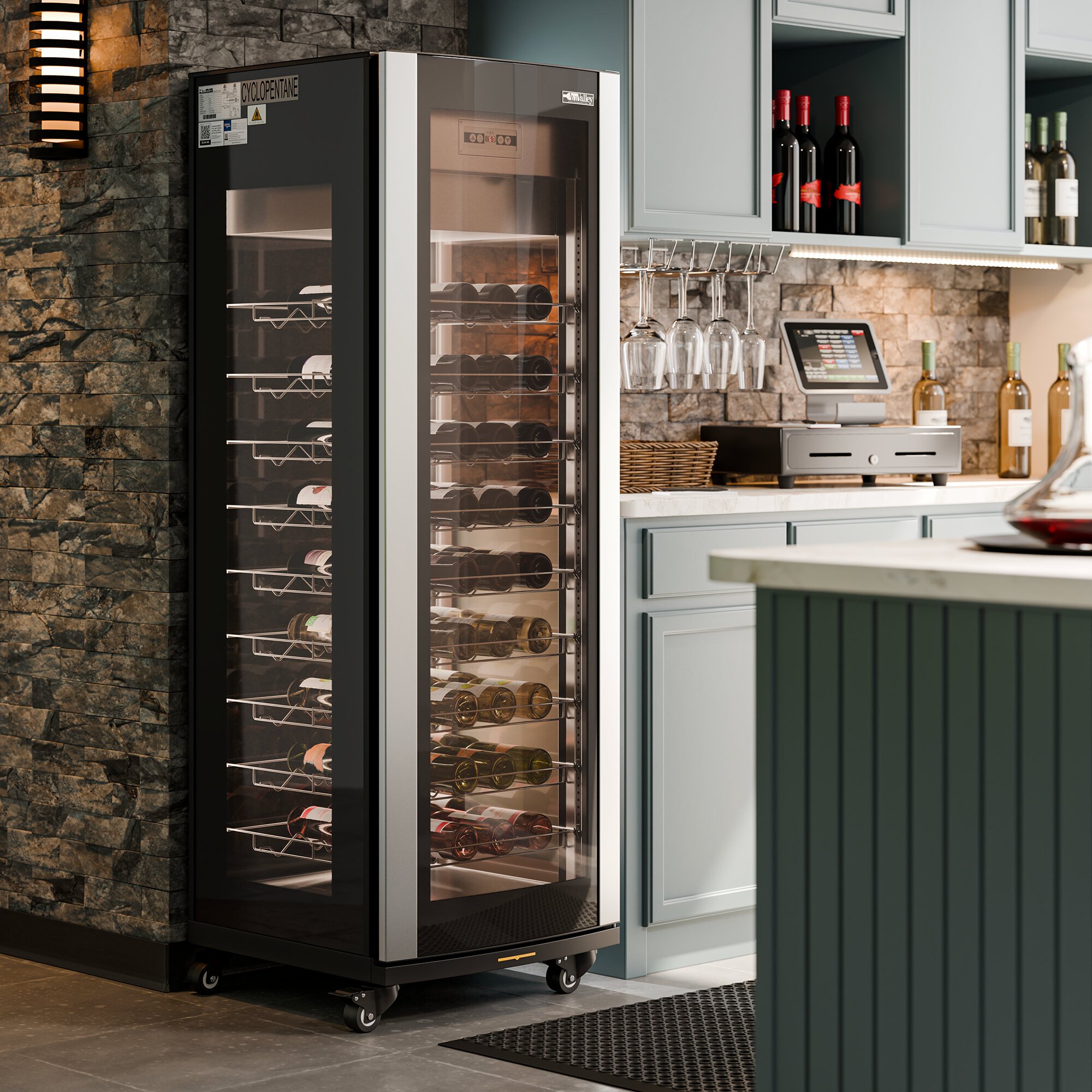 Single Section 81-Bottle Glass-Sided Wine Merchandiser