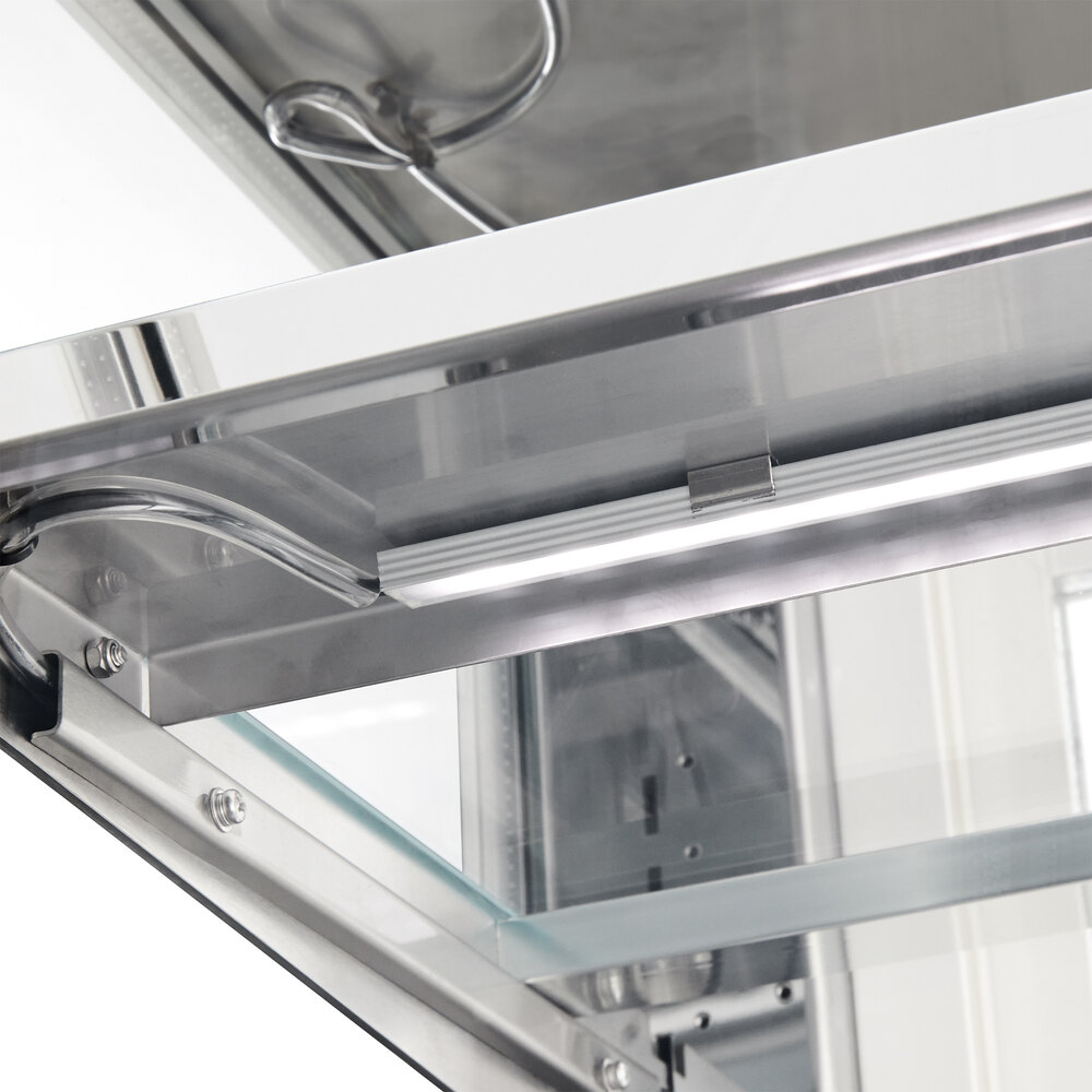 The flat front glass provides an unobstructed view of your food while the side glass panels and rear glass access doors ensure that customers can see the case's contents from any angle. A specialized air outlet design circulates air against the heated glass front to reduce and prevent the build-up of condensation. Without condensation to get in the way, your customers will always have clear visibility to your tempting desserts!