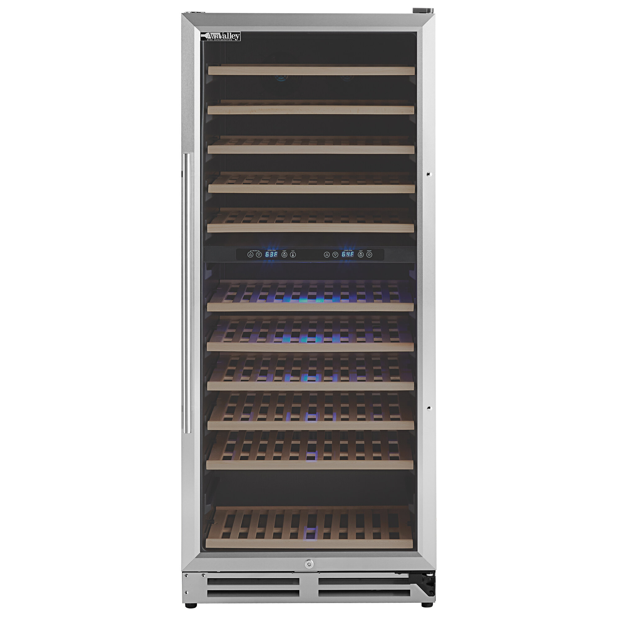 Safely store wine while having it perfectly chilled and ready to serve with this AvaValley WRC-128-DZ single-section, dual-temperature full glass door wine refrigerator. Its wide-ranging temperature capability makes this wine refrigerator a versatile addition. With a temperature range from 41-72 degrees Fahrenheit, it's simple to store either white or red wine in the refrigerator for added convenience.