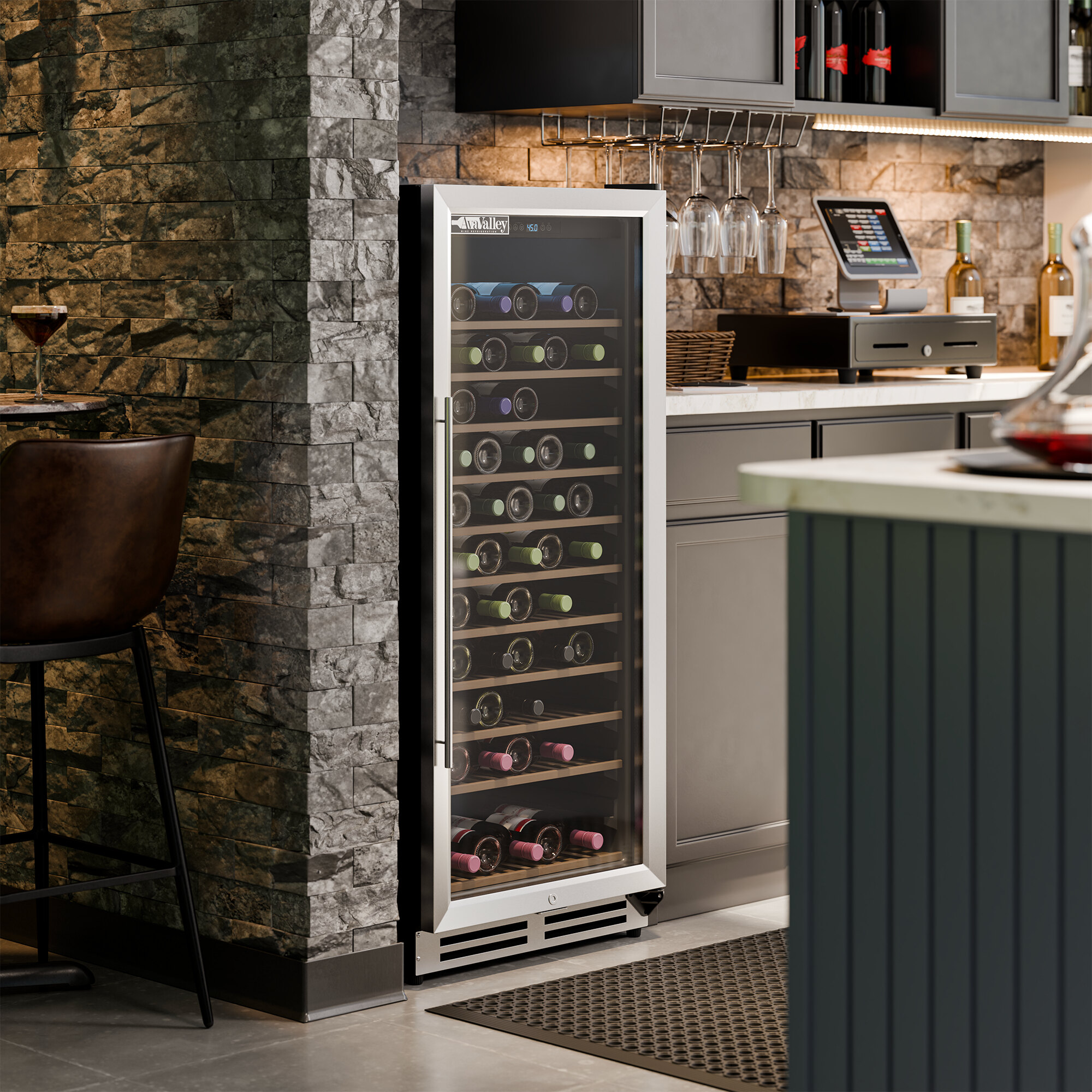 Safely store and cool your favorite wines in this AvaValley WRC-128-SZ single section single temperature full glass door wine refrigerator. Its wide-ranging temperature capability makes this wine refrigerator a versatile addition. With a temperature range from 41-72 degrees Fahrenheit, it's simple to store either white or red wine in the refrigerator for added convenience.